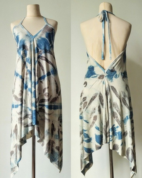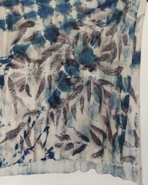 Todas y cada una de las prendas intervenidas en este taller son únicas, por su carácter artesanal: cada reserva de teñido Shibori y cada rama, hoja y flor utilizados dejan su propia y singular impronta.