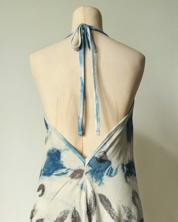 Teñido elaborado con técnica Shibori, utilizando tintes naturales de Indigofera Tinctorea (Índigo)