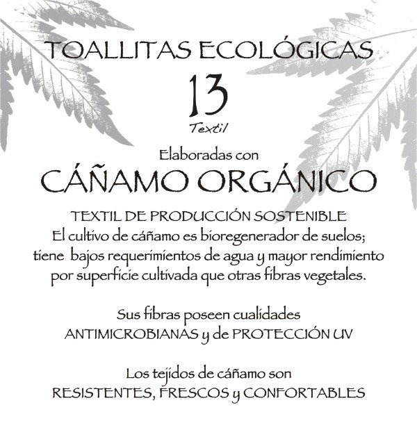 * LAS TOALLITAS Y PROTECTORES ELABORADOS EN ESTE TALLER NO CONTIENEN CAPA IMPERMEABLE. El dorso, así como toda la prenda, se confecciona con fibras de origen vegetal. Los únicos materiales textiles sintéticos son los hilos de poliester.